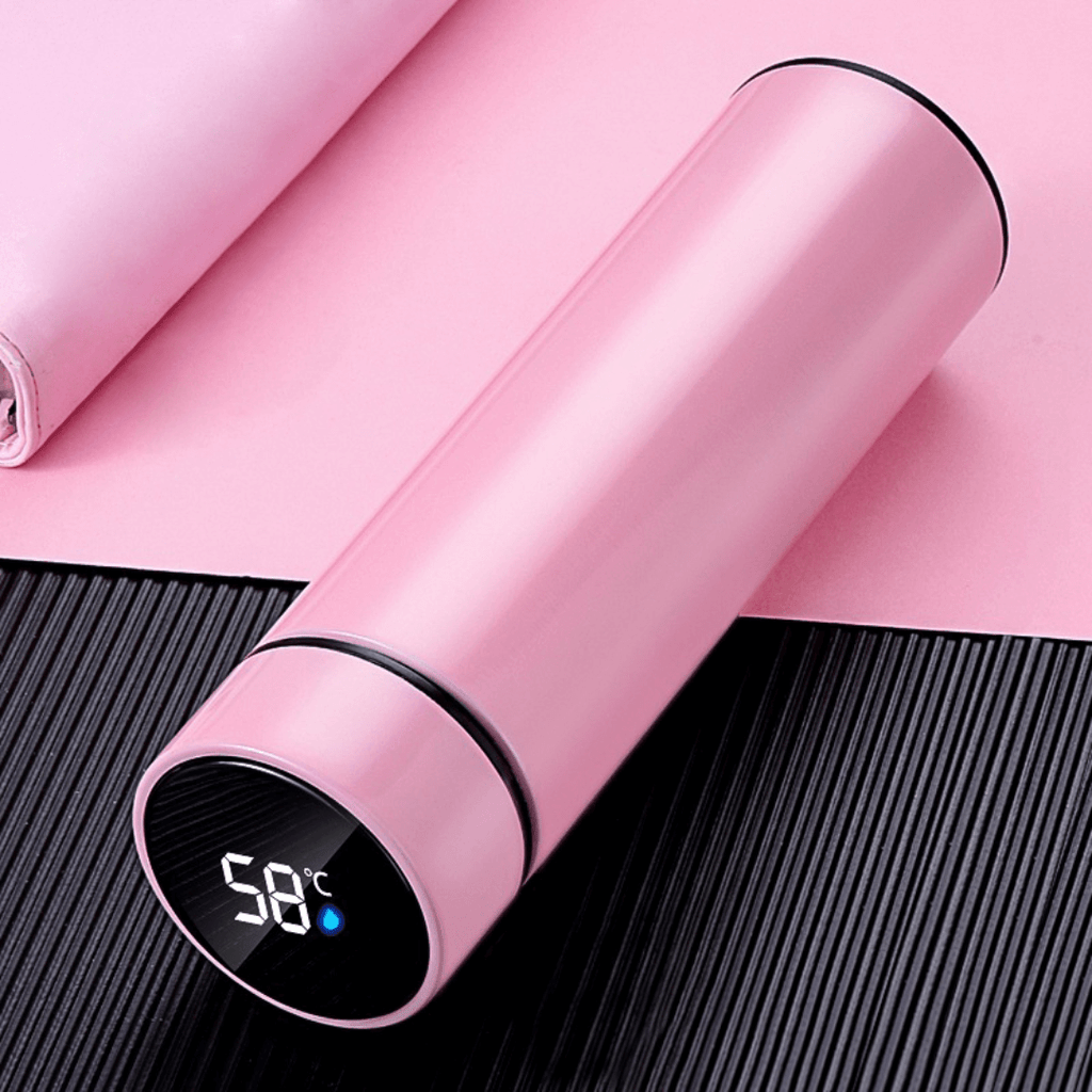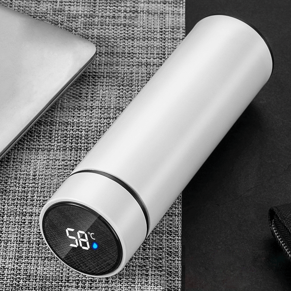 Garrafa térmica inteligente de aço inoxidável a vácuo com termômetro e display digital. Feito para bebidas quentes e geladas.