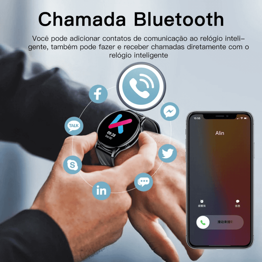 Função: Bluetooth chamada, NFC, monitoramento do sono, sedentarismo, controle de musica, temporizador ......