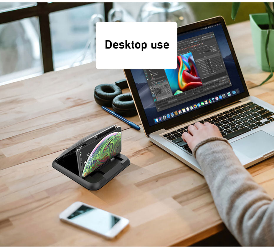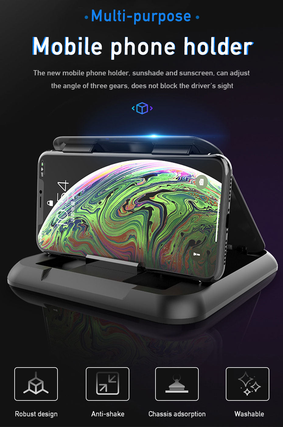 2. reforço triplo estável e antiderrapante no painel: uma grande base de sílica gel é cercada por silicone pegajoso e um copo de sucção para que o suporte possa ser firmemente afixado à sua placa do traço, mesmo quando o carro passa por curvas afiadas, paradas repentinas ou acelerações.