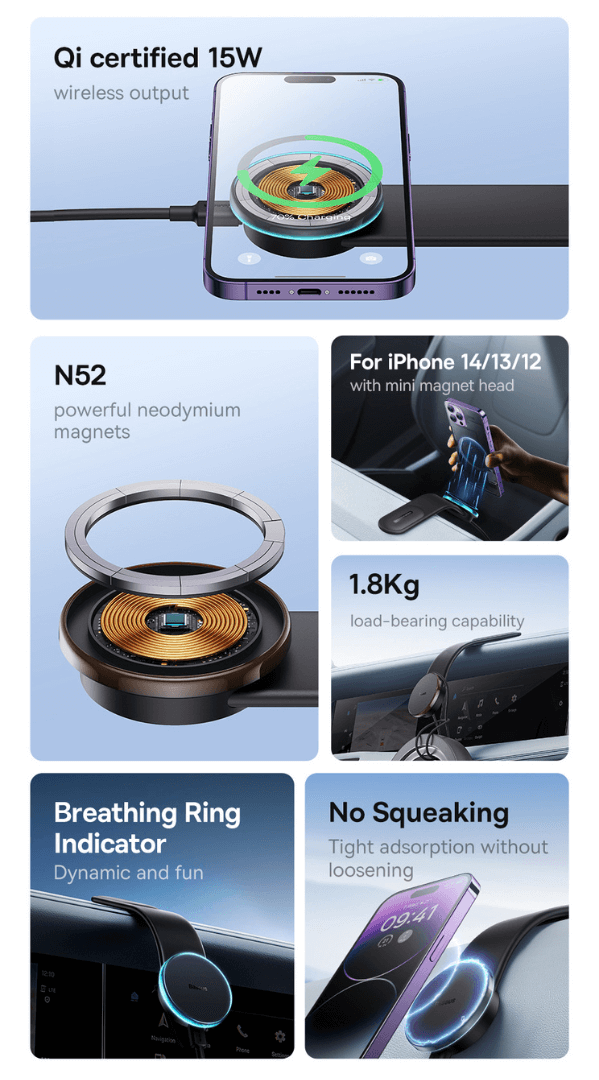 Suporte veicular recarregável flexível , compatível com Magsafe